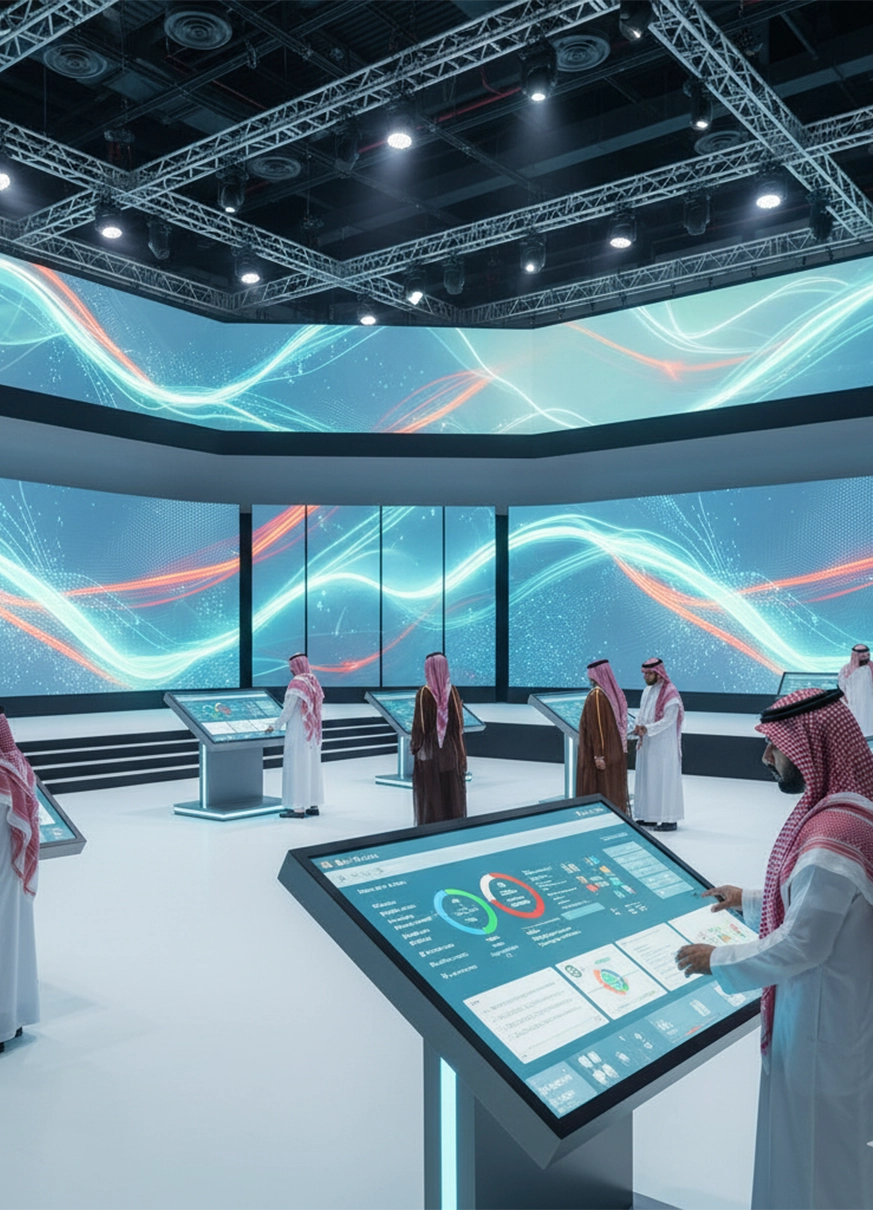 We provide display and screen setup services as a comprehensive solution for equipping exhibitions and conferences with the latest visual technologies. We rely on precise engineering planning to ensure clear images, vibrant colors, and a comfortable viewing experience for attendees, regardless of the hall size or type of event.