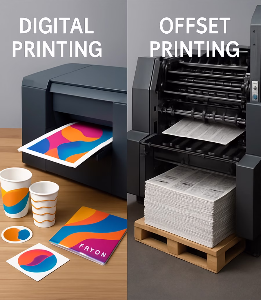 • الأوفست تقدم نطاقًا أوسع من الألوان وبدائل الورق، بينما توفر الطباعة الرقمية دقة ممتازة وسرعة إنجاز أكبر.